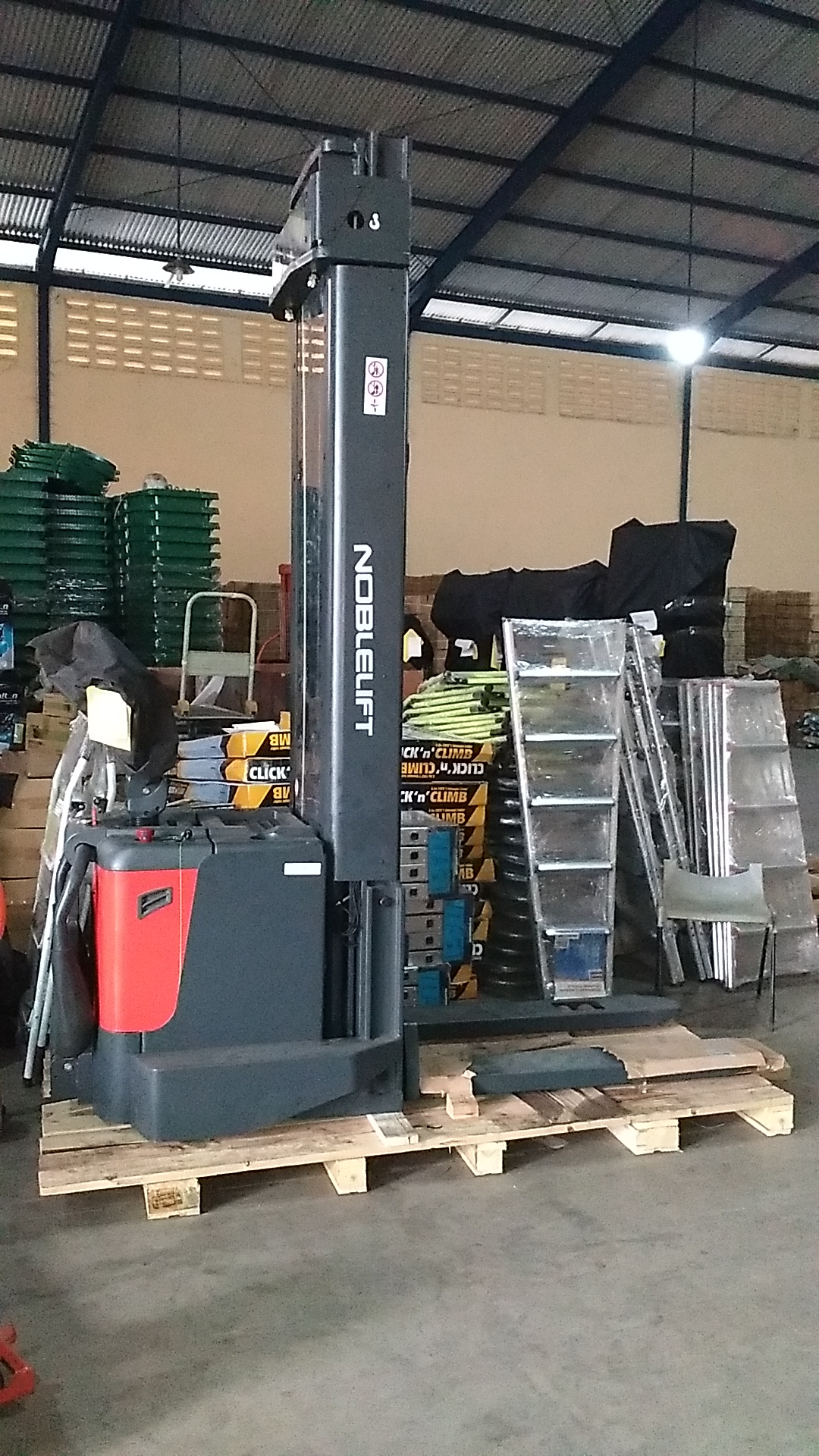 Stacker elektrik merk Noblift type PS 15-50 mempunyai Spesifikasi dengan kapasitas 1.5 ton dan mampu mengangkat beban dengan ketinggian hingga 5 meter. Stacker elektrik ini sangat cocok untuk memindahkan barang atau menata barang di gudang dengan sistim racking.